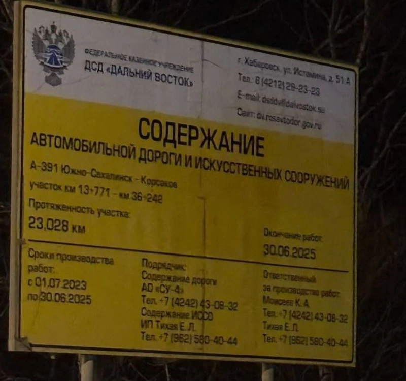 В конце июня 2025 года подрядчик планирует завершить ремонт трассы Южно-Сахалинск — Корсаков. Протяженность участка превышает 23 километра, а работы ведут с июля 2023 года.