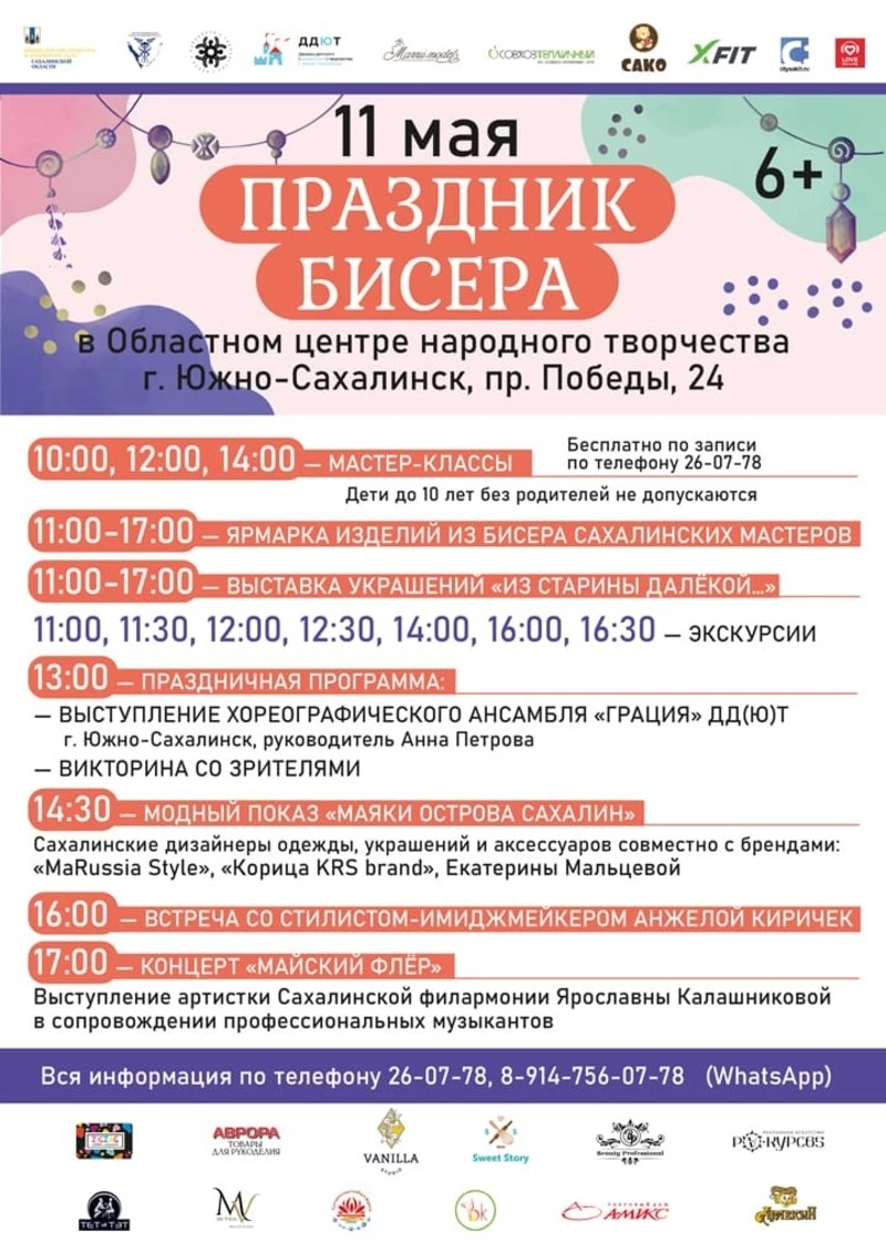 Помимо этого посетителей «Праздника бисера» ждут викторина, выступления творческих коллективов, встреча со стилистом-имиджмейкером, показ моделей одежды и украшений от сахалинских дизайнеров.
