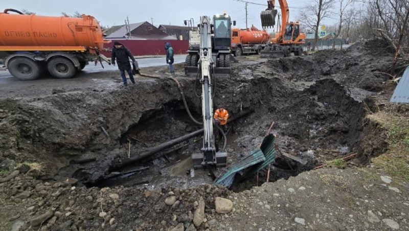 Ремонт проходит медленно из-за сложностей. Трубы старые, сделаны из хрупкого материала, к тому же расположены на глубине 4-х метров. Коммунальщики работают очень осторожно.