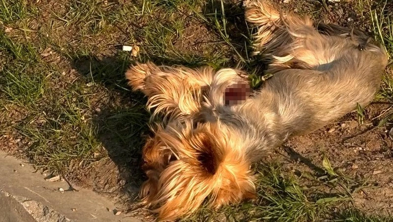 По словам очевидцев, собаку сбила машина. Прохожие перенесли тело животного с дороги на обочину.