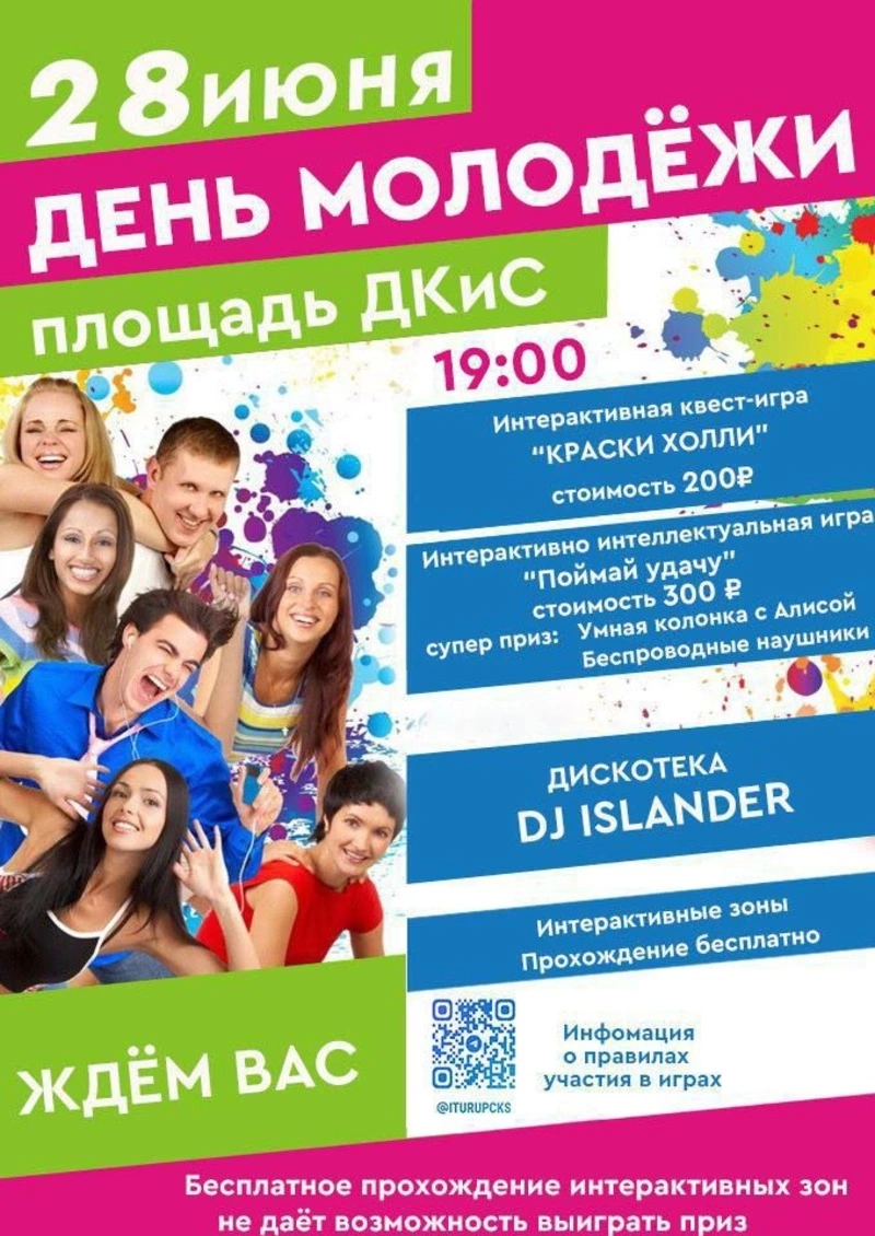 В Курильском муниципальном округе молодежь приглашают 28 июня в 19:00 на площадь Дворца культуры и спорта. Гостей ждет интерактивный вечер с конкурсами и розыгрышами суперпризов — портативной колонки «Алиса» и беспроводных наушников. На площадке будет весело и шумно: музыка, танцы и море летних эмоций.