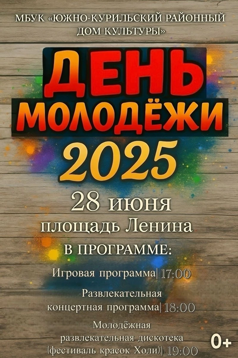 В Южно-Курильске праздник развернется у районного дома культуры на площади Ленина. Программа начнется с игровой площадки в 17:00, в 18:00 — старт развлекательной концертной программы. Завершится все большой молодежной дискотекой с фестивалем красок Холи. Организаторы ждут гостей всех возрастов — ведь молодежь здесь не только по паспорту, но и по духу.