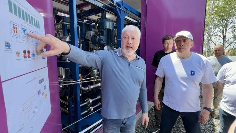 Специалисты Специального конструкторского бюро средств автоматизации морских исследований ДВО РАН (СКБ САМИ) продемонстрировали главе региона один из первых результатов работы водородного полигона — создание заправочного комплекса.