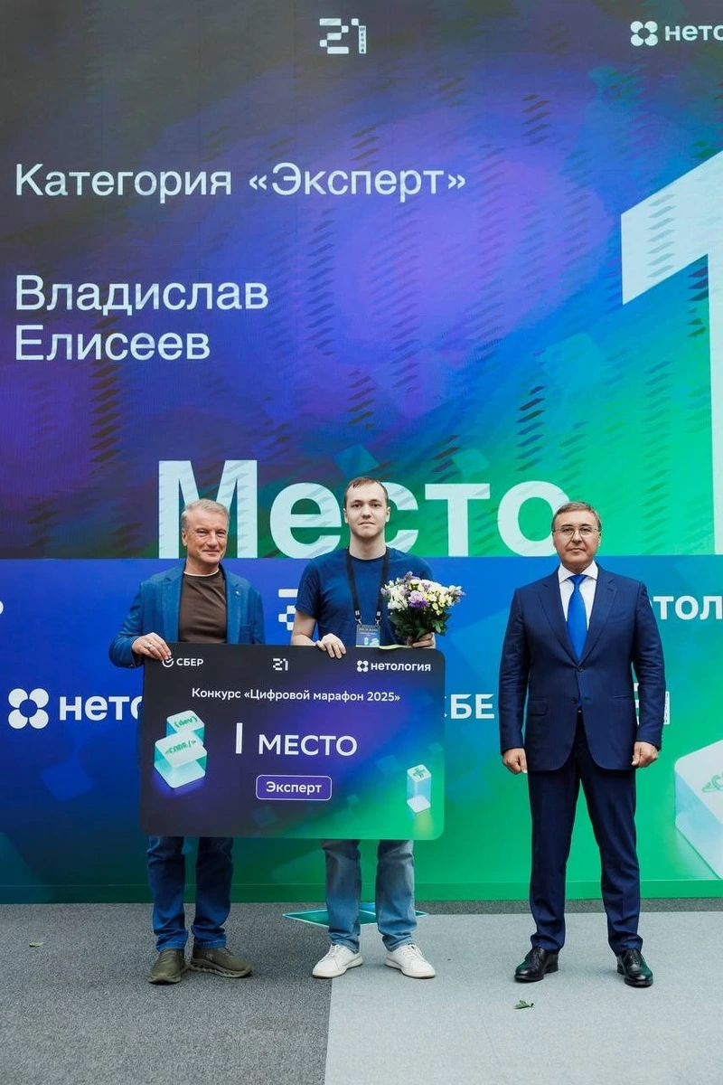 «Я познакомился с цифровыми технологиями в 7-м классе — в школе предложили поработать с кодом. Сначала я просто учился его переписывать, потом стал писать сам. В итоге связал свою жизнь с ИТ — учусь по направлению „Прикладная информатика и математика“. В „Цифровом марафоне“ я участвовал впервые, очень понравился игровой формат и то, что все этапы были максимально приближены к реальности. Сложности меня даже вдохновляли! Узнав о своей победе, я очень удивился и, конечно, обрадовался. Дальше — больше, ведь эта сфера перспективная, постоянно развивается и привносит что-то новое в жизни людей», — сказал победитель «Цифрового марафона» в категории «Эксперт» Владислав Елисеев.