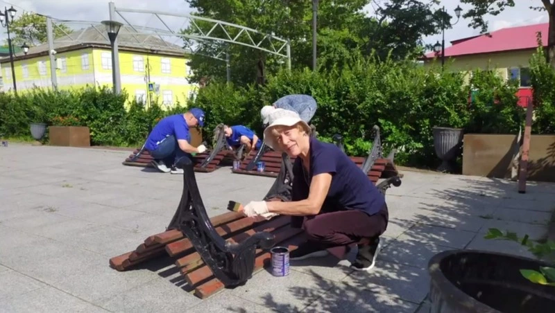 Волонтеры убрали мусор с территории Аллеи Славы, покрасили скамейки. Также они почистили мемориальные доски, хранящие имена героев-островитян, убрали сорняки, которые пробились через плитку.