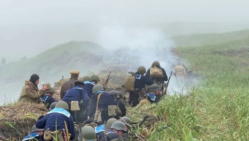 Параллельно с тихой работой поисковиков на Шумшу оживляли прошлое. Сотни людей в форме красноармейцев и японских солдат готовились к реконструкции боя. Это была не игра. Это была попытка понять. Почувствовать, каково это — бежать по вязкому песку под огнем.