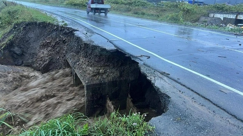 Неприятности наблюдаются также на автодороге Невельск — Шебунино: на 8-м километре размыло дорожное полотно, а на 17-м сошел сель.