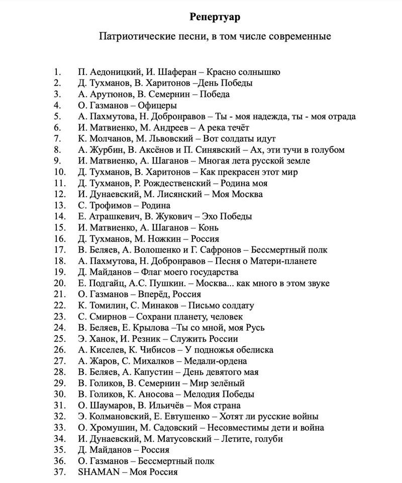 Ознакомиться с полным перечнем рекомендованных патриотических композиций можно на фото ниже.