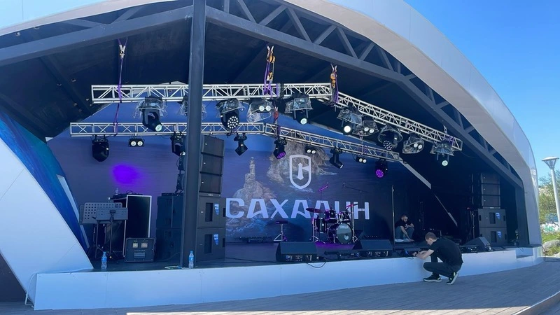 Культурная программа в рамках ВЭФ поспособствует популяризации творчества островных исполнителей. Артисты Академии Эстрады споют песни сахалинского композитора Георгия Зобова. Сцену как раз заканчивают возводить.