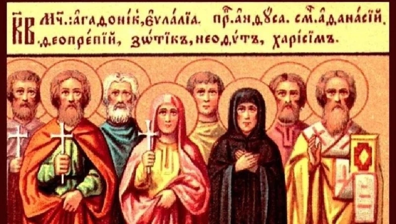 По древнему сказанию, святые мученики Агафоник, Зотик, Боголеп (Феопрепий), Акиндин, Севериан, Зинон и многие другие были казнены за свою приверженность вере Христовой в эпоху правления императора Максимиана на стыке третьего и четвертого столетий нашей эры.
