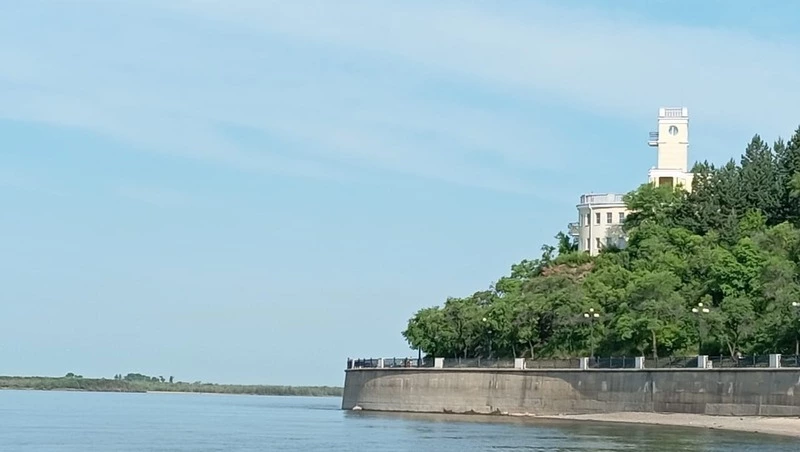 Сейчас над тем местом, куда причалил чеховский пароход, высится «Амурский утес» — символ города и архитектурный памятник культуры краевого значения, напоминающий замок Ласточкино гнездо в Ялте, где обитал Антон Павлович в конце жизни. Хабаровчане утверждают, что солнечных дней у них не меньше, чем на Чёрном море, — 300 в году!