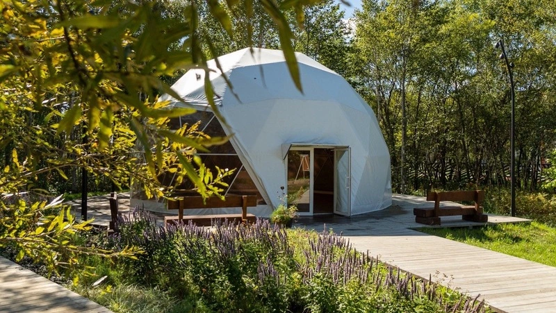 Помимо трех километров деревянных тротуаров для посетителей установили площадку молодоженов, детскую площадку с качелями и площадку бардов. На территории сада также построили большой утепленный купол, площадку с деревянными креслами. Рабочие также укрепили и расширили берега. По всему парку установили урны, туалетные модули и скамьи. Вдоль тротуаров разместили более 160 опор освещения.