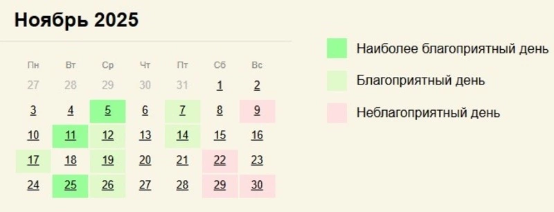 Несколько дней в ноябре выделяются как особо удачные. Если вы хотите получить идеальный результат, планируйте визит в салон именно на эти даты.
