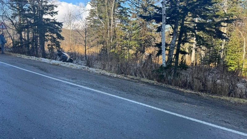 В районе Нечаевки (Корсаковский район) местные жители заметили два перевернутых автомобиля.