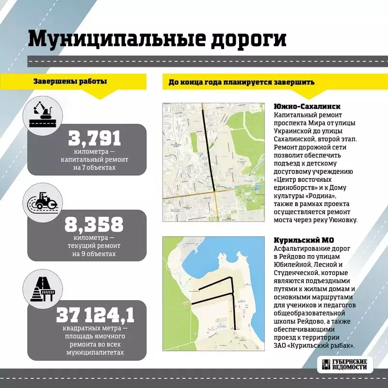 Сезон дорожных работ на Сахалине завершают: какие трассы обновили и что ждет впереди? — карточки
