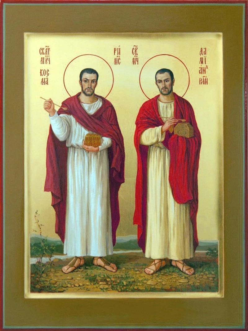 Братья жили во второй половине III — начале IV веков. Мальчиками они рано лишились отца, их воспитанием занималась мать — святая Феодотия. Повзрослев, юноши выучились на врачей. За праведный образ жизни Господь даровал им способность исцелять больных. Косма и Дамиан никогда не брали платы с людей, которых лечили, из-за этого их и прозвали бессребрениками.