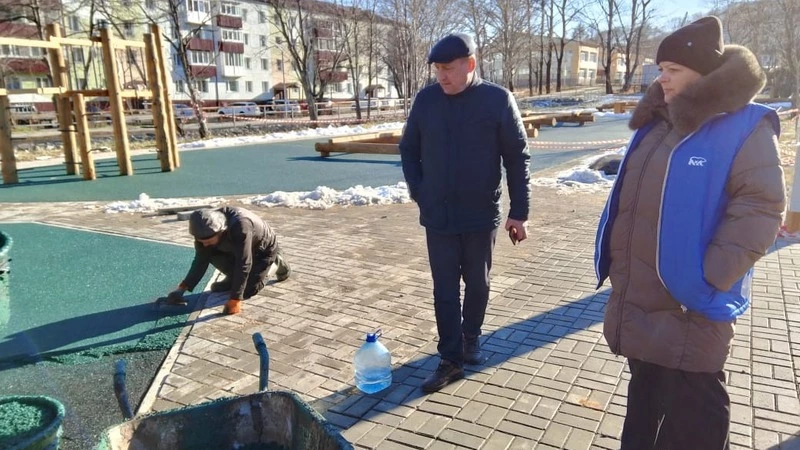 В рамках реализации Народной программы представители партии проверили, как подрядчик уложил ударопоглощающее покрытие. Оно значительно снижает риск получить травму при падении. Укладку провели в два слоя – так покрытие стало надежнее и долговечнее. Проверяющих устроило качество работ, строительство уже близится к завершению.