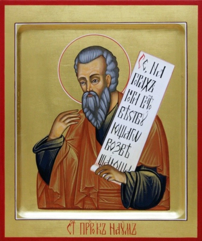 Святой был одним из 12 малых пророков Ветхого Завета. Он жил в VII веке до нашей эры и составил книгу, в которой содержится предсказание гибели города Ниневии, столицы Ассирийского государства. Разрушение, согласно пророчеству Наума, было послано свыше в наказание за беззаконие его жителей. Также святой учит, что зло и жестокость не остаются без наказания, а справедливость Божия всегда восторжествует.