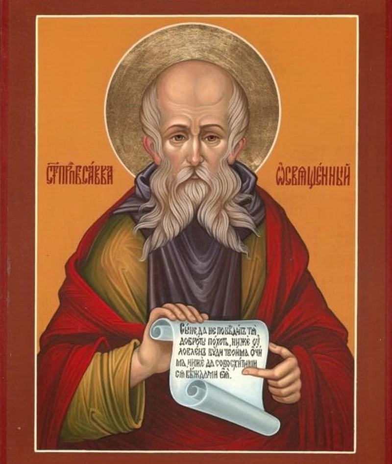 Святой считается одним из самых почитаемых раннехристианских подвижников. Он родился в 439 году в Каппадокии, выбрал путь служения Богу и стал послушником в монастыре святой Флавианы, а в 17 лет постригся в монахи. Десять лет Савва провел в роли затворника и после смерти его учителя удалился в пещеру в Иорданской пустыне.