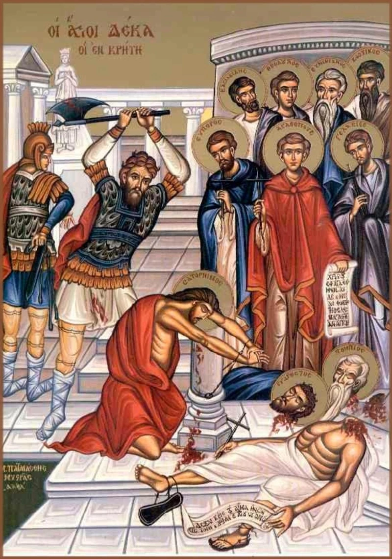 После всех неудачных попыток заставить мучеников подчиниться правитель приказал казнить мужчин через обезглавливание. По преданию, их смерть сопровождалась чудесами, которые укрепили веру многих христиан на Крите. Тела святых тайно захоронили другие христиане, а место их упокоения стало местом паломничества.