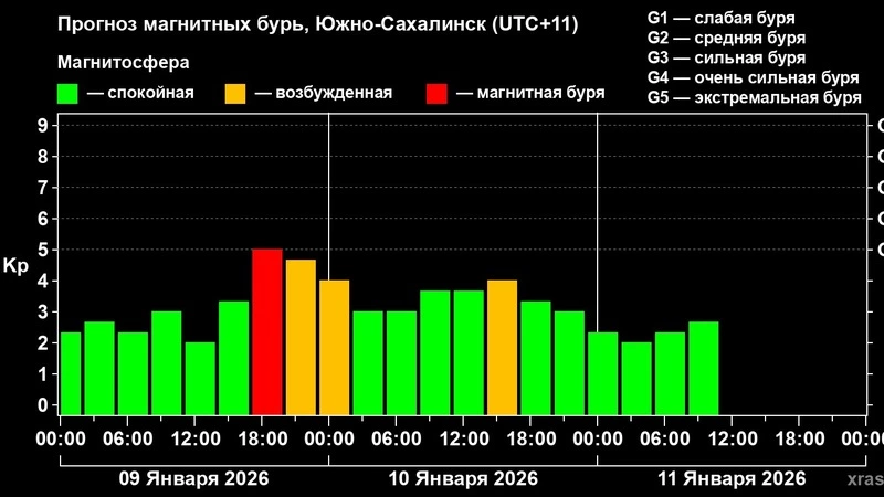 Магнитная буря будет бушевать ориентировочно в период с 18:00 до 20:00 по сахалинскому времени. В последующие часы магнитосфера будет возбужденной.
