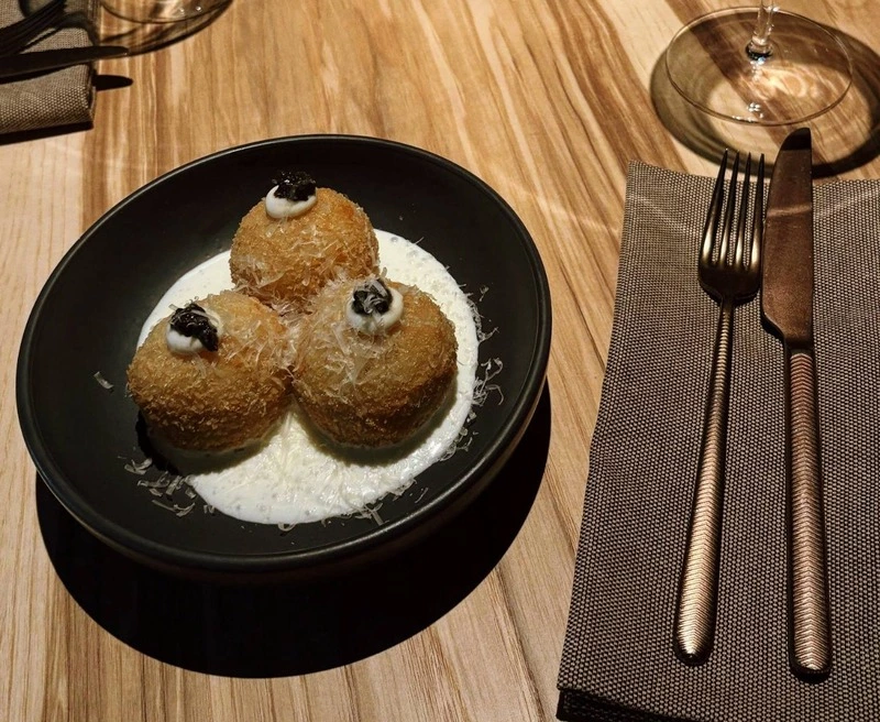 Автор рецепта су-шефа ресторана «Клево» Анастасия Бэ отмечает, что аранчини — универсальное блюдо: для них подойдет не только свежесваренный рис, но и тот, что остался после обеда или ужина. Классический сорт арборио можно заменить любым круглозерным рисом, а начинку — варьировать по вкусу. В этом варианте — насыщенное сочетание копченой утки и грибов, которое делает закуску особенно ароматной и сытной.
