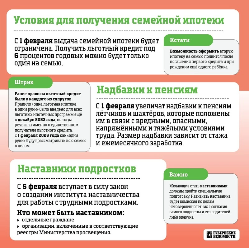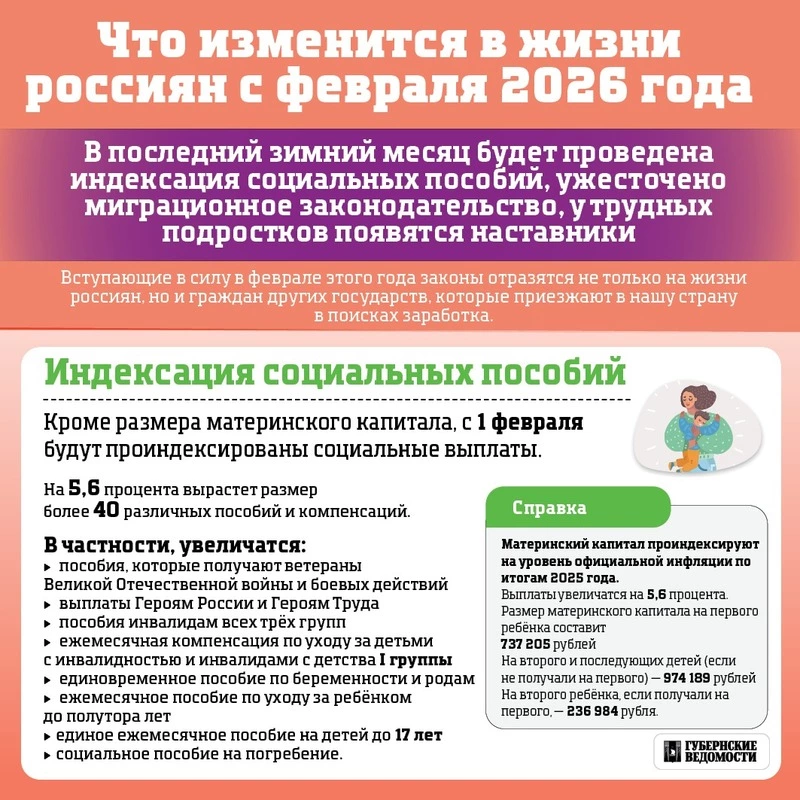 В феврале проиндексируют социальные пособия, ужесточат миграционное законодательство, а у трудных подростков появятся наставники.