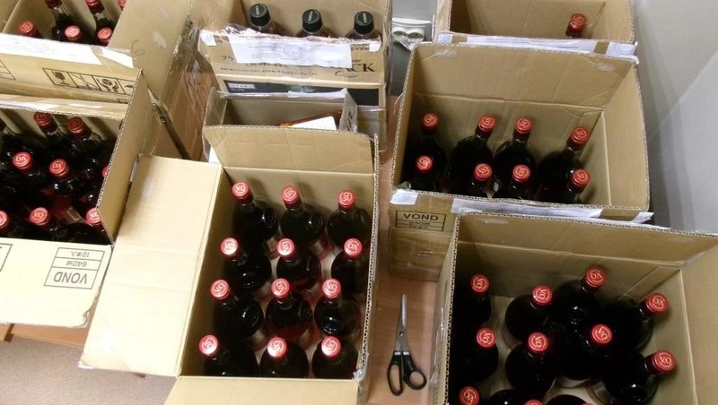 Во время досмотра в резервуаре для смазочного масла обнаружили тайник. Внутри было спрятано около 55 литров дорогого алкоголя — виски, ликера и бренди из Японии, а также 60 пачек сигарет.