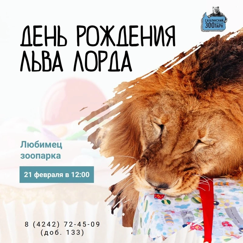В Сахалинском зооботаническом парке готовятся к большому событию — 21 февраля здесь отметят 17-летие всеобщего любимца, льва Лорда. По этому случаю гостей ждет насыщенная праздничная программа. Организаторы обещают подарки от именинника.