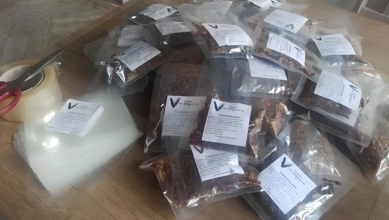 Главный помощник Марии на кухне — дегидратор. За время приготовления сухих обедов наша героиня пользовалась разными видами техники, и не вся выдерживала. В отличие от них новый объёмный аппарат более мощный и справляется с задачей лучше предшественников. Его помогли приобрести неравнодушные люди, состоящие в группе «серебряных волонтёров» «Победа». После сушки продукцию упаковывают в вакуумные пакеты, чтобы увеличить срок годности.