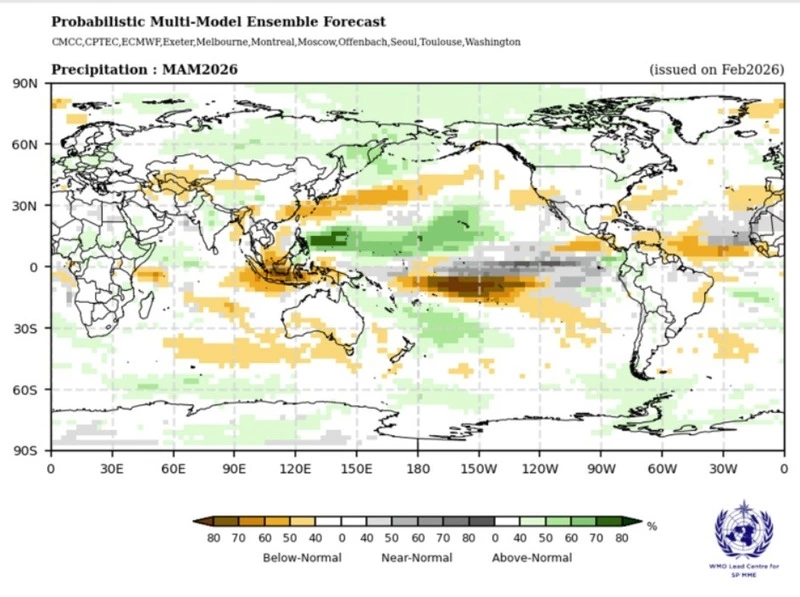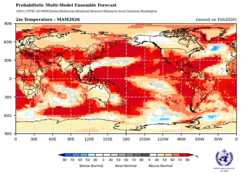 Специалисты также отметили, что температура поверхности океана с ноября 2025 года оставалась в целом выше среднего уровня во внетропических широтах обоих полушарий, и эта накопленная океаном тепловая энергия также способствует формированию теплой погоды на протяжении всех весенних месяцев.