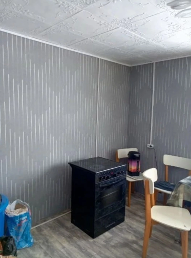 В квартире заменили пол в жилой комнате, восстановили стены и потолок. Кроме того, полностью заменили электросети и двери.