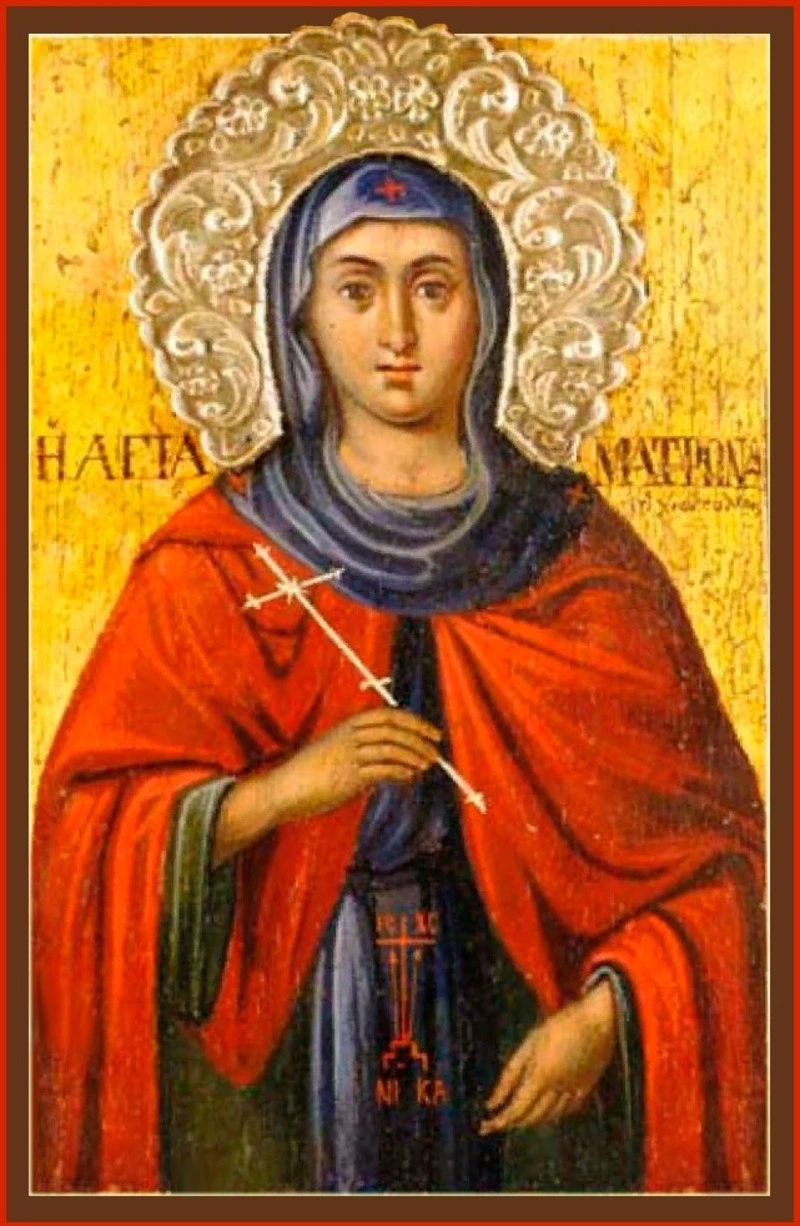 Мученица жила в III–IV веках, была рабыней жены военачальника в Салониках. Матрона была христианкой, но скрывала это от хозяйки. Каждое утро она сопровождала Пантиллу до синагоги, но сама уходила молиться в христианский храм.