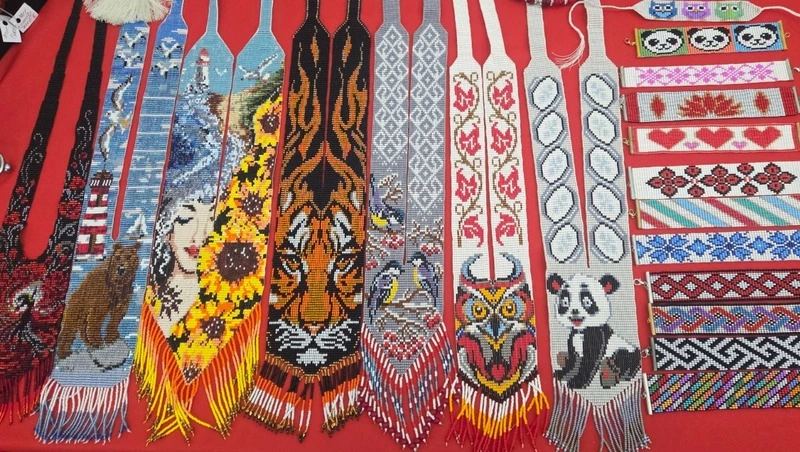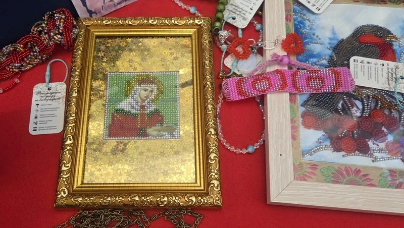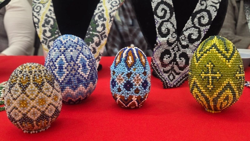 На ярмарке островные мастерицы представили не только бижутерию, но и бисерные кокошники, иконы, пасхальные яйца.