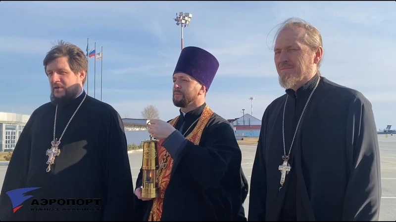 Святыню доставил на остров Airbus A319 авиакомпании «Аврора» из Хабаровска. Благодатный огонь проделал огромный путь из Иерусалима и попал также в кафедральный собор Рождества Христова.