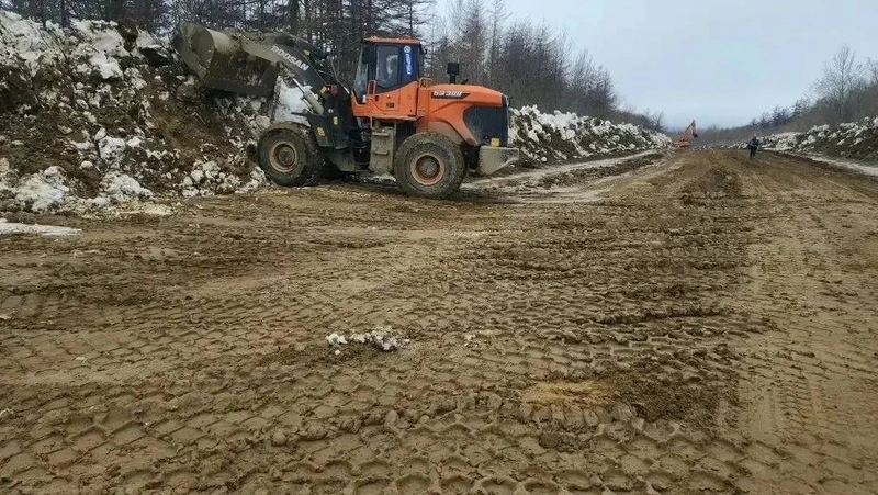 Специалисты выполнили работы по перемещению слабых грунтов с проезжей части, отгрейдировали участок и сейчас продолжают устройство земляного полотна. Участок открыт для проезда транспорта.