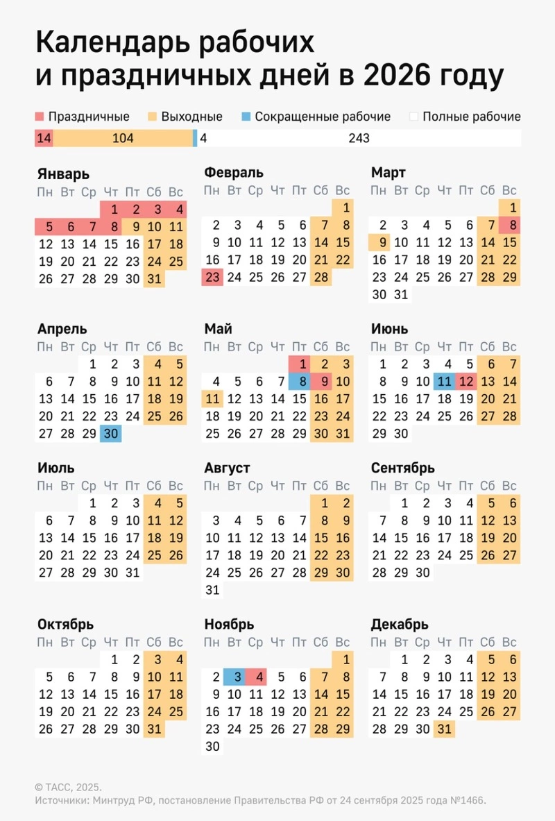 Следующая рабочая неделя в России будет четырехдневной и продлится с 27 по 30 апреля. Об этом сообщает ТАСС со ссылкой на производственный календарь на 2026 год.