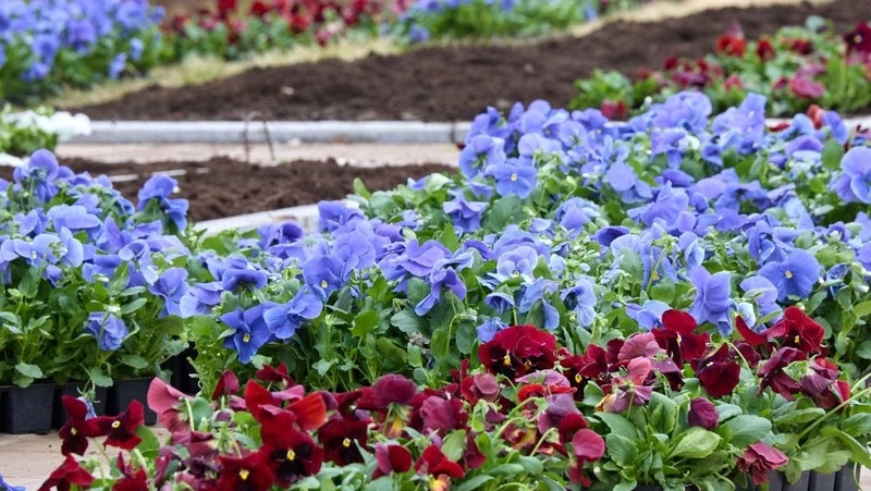 Виолы, они же фиалки, выбрали не случайно — они устойчивы к холодам и нестабильным погодным условиям, свойственным для Сахалина. Кроме того, цветы предварительно «закаляют» в теплицах с особым температурным режимом.
