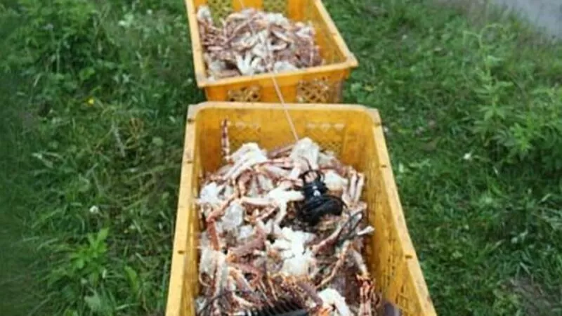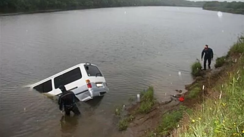 Утонувший автомобиль подняли со дна реки и обнаружили внутри две корзины с крабами (69 штук). Сумма ущерба составила 56 тыс. руб.