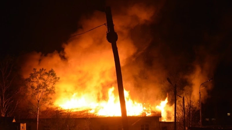 Заброшенное здание сгорело в районе лицея №1 в Южно-Сахалинске.