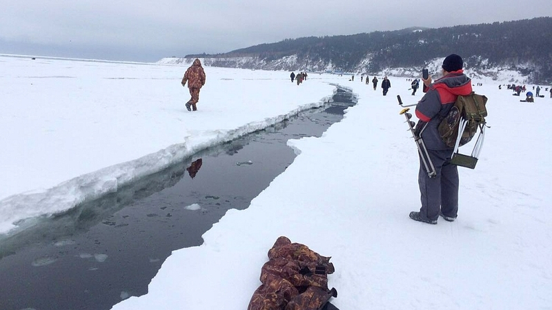 По словам сахалинца Степана Калашникова, который сейчас находится в районе мыса Свободный, когда на льду образовалась трещина, люди в спешке стали покидать побережье. Кто-то забыл забрать рюкзак и палатку. Рыбаки спустили на воду резиновую лодку и отправились за вещами.