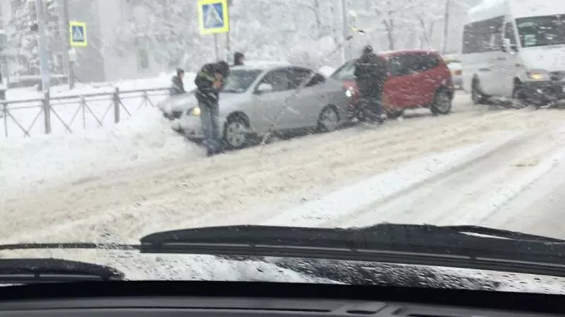Циклон и его последствия – плохая видимость и нерасчищенные дороги - 13 декабря открыли в Южно-Сахалинске череду аварий. Усугубляют положение заторы и пробки на дорогах.