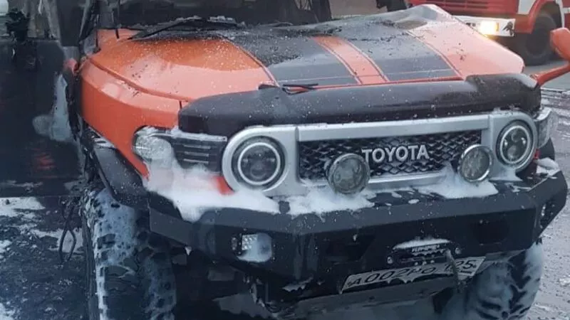 Как рассказал РИА «Сахалин-Курилы» владелец внедорожника FJ Cruiser Евгений Прима, в 5:00 сработала охранная сигнализация. Он выглянул в окно и увидел возгорание задней части автомобиля, который стоял в одном ряду с другими машинами на парковке. Мужчина тут же позвонил в Единую службу спасения, сообщил о случившемся, а после выбежал на улицу и попытался потушить огонь самостоятельно.