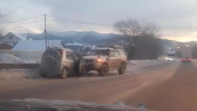 Еще одно ДТП заметили утром 28 декабря на улице Транзитная, где лоб в лоб столкнулись два внедорожника. Фотографию опубликовали очевидцы в WhatsApp-группе «Юж_65_сах».