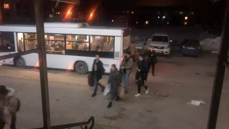 «Студенты из общежития СахГУ приехали в дом ветеранов в Луговом», - говорится в telegram-канале правительства Сахалинской области. На фото видно, что учащихся привезли на автобусах. Их уже разместили в номерах.