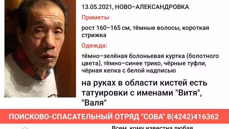 В островной столице исчез пожилой мужчина. 68-летнего Нагано Хен Бока (Виктора) разыскивают полицейские и волонтеры сахалинского поисково-спасательного отряда «Сова».