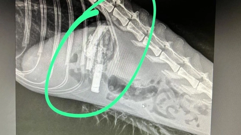 Специалисты сделали рентген коту и обнаружили в брюшной полости инородные материалы. Предполагается, что в желудке пострадавшего животного находятся ошейник от блох, ватные палочки, кусочки целлофанового пакета. По этой причине кот не ест, не может нормально передвигаться и сидеть. Естественным образом предметы не выйдут, требуется хирургическое вмешательство. В ближайшее время ветеринары прооперируют кота.