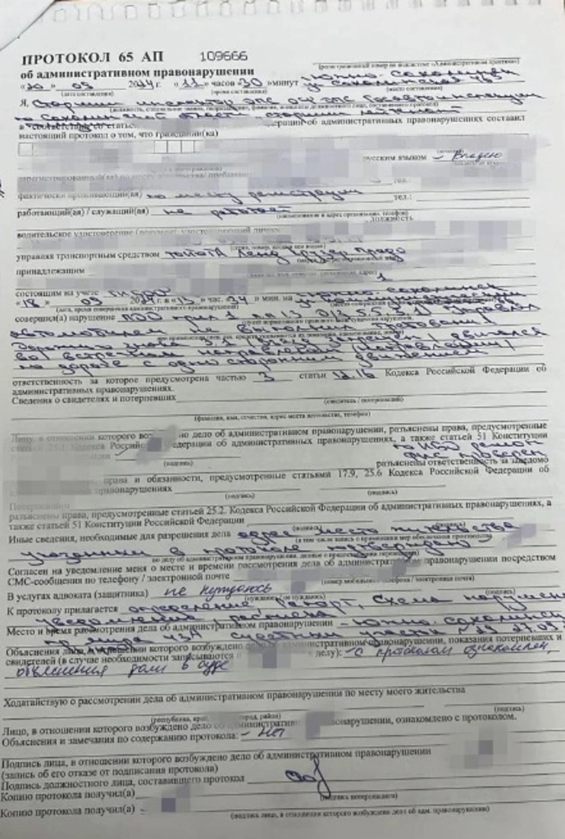 В отношении него составлен административный протокол по части 3 статьи 12.16 КоАП РФ.