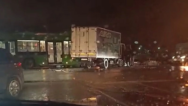 Авария произошла недалеко от торгового дома «Зодчий», недалеко от нового ПАТП. По предварительной информации, столкнулись грузовик, зеленый пассажирский автобус и легковой автомобиль Toyota Corolla.