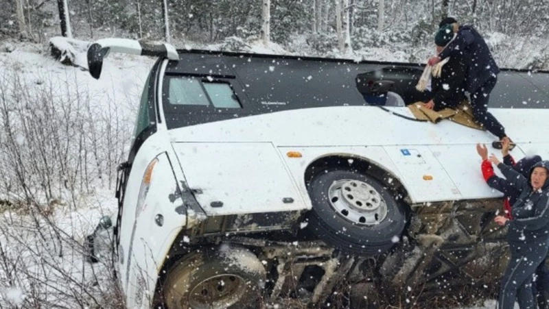 Автобус следовал по маршруту Оха — Ноглики. Отметим, что на севере Сахалина уже довольно снежно, а дороги оказались в скользкой слякоти.